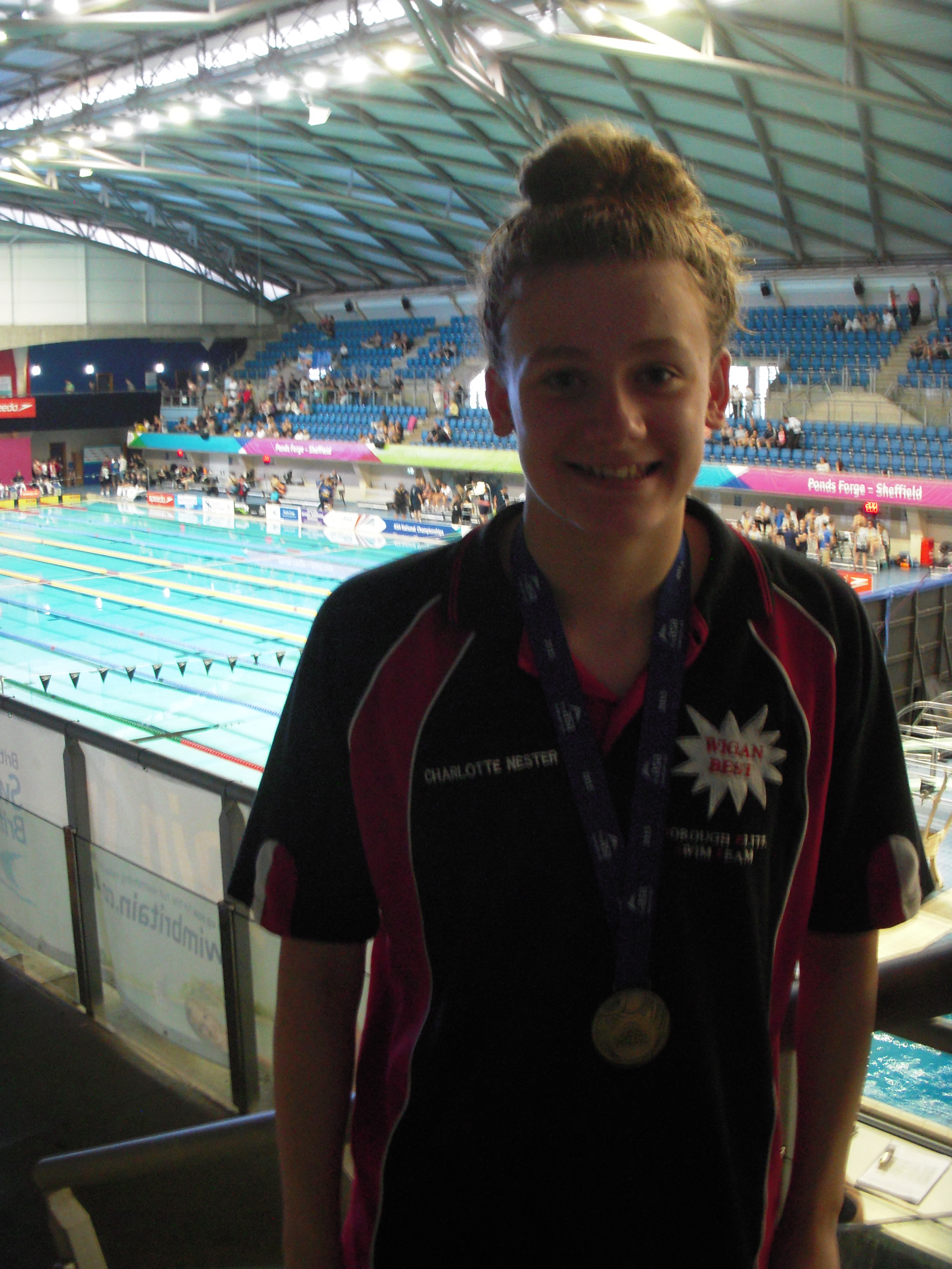Inspired by the girls effort’s on day1 the team went on to produce some excellent individual performances throughout the week. 14 year-old Charlotte Nester fought her way to the final of the 50m Breaststroke, in the evening final Charlotte produced her best swim to date reducing her personal best time by over 1.5 seconds which gave Charlotte her first National title winning in an excellent 34.26. Following on from this success Charlotte went on to an excellent 5th place in the 50m Backstroke and 9th in the 400m Individual Medley.